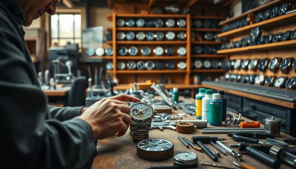 For everyday upkeep, stay away from extreme temperatures and magnetic fields. They can mess with your watch’s timekeeping. Also, clean your watch regularly with a soft cloth to stop dirt and dust buildup. For service, aim to get your watch checked every 3-5 years. This keeps the movement well-lubricated and adjusted, Mechanical Watch Movements.
